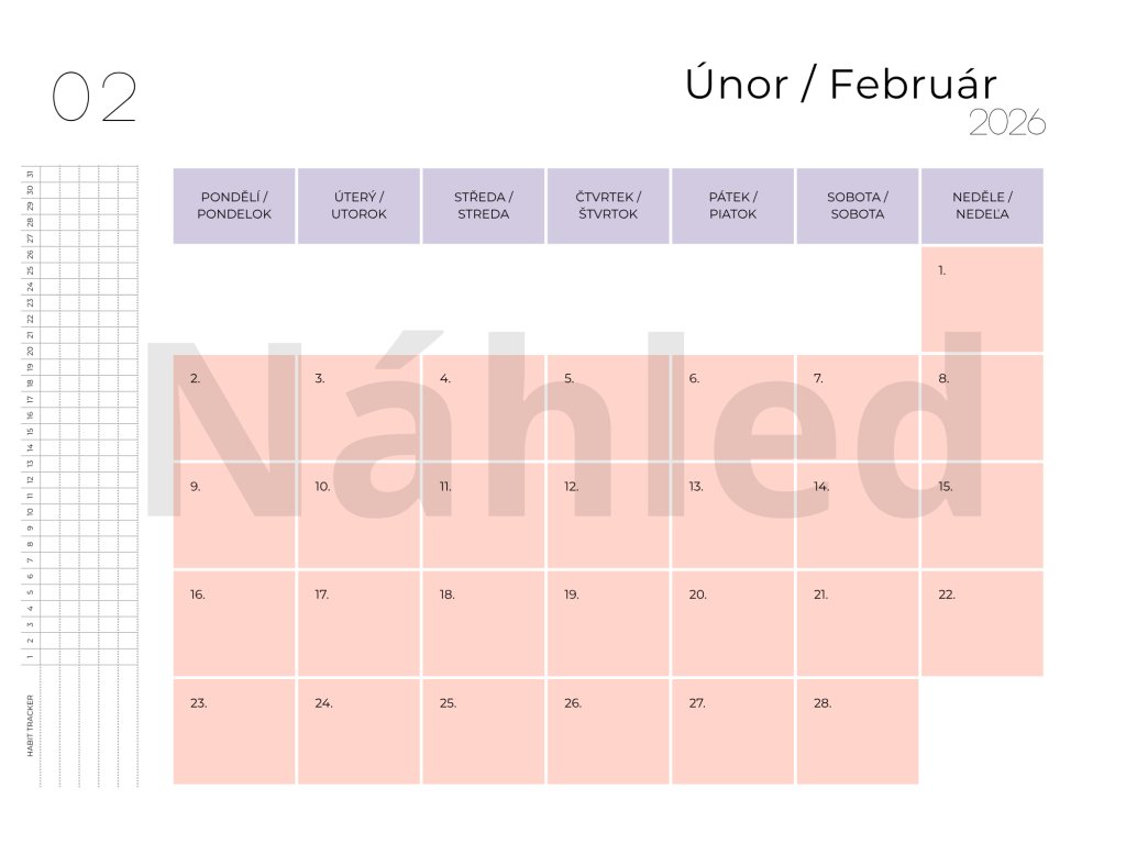 Plánovač obsahuje 14 listů, z toho 12 měsíců detailního plánování. Každý měsíční list je doplněn o habit tracker, který vám umožní sledovat pravidelnost tréninků, doplňkových aktivit nebo jiných návyků důležitých pro váš běžecký rozvoj. Díky tomu máte stále jasno v tom, jak se vám daří držet nastavený režim.